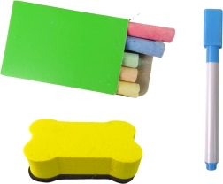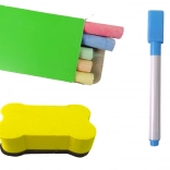 - Feutre avec aimant et gomme, 5 craies de couleur, éponge