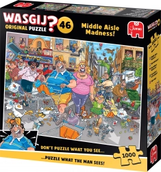 Puzzle JUMBO WASGIJ 46 : Folie de la rue principale renverse le puzzle traditionnel. Au lieu du visuel de la boîte, vous assemblez la scène depuis le point de vue d’un personnage, que vous découvrirez grâce aux indices et astuces figurant sur l’emballage. Chaque assemblage devient ainsi différent, captivant et extrêmement amusant.