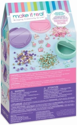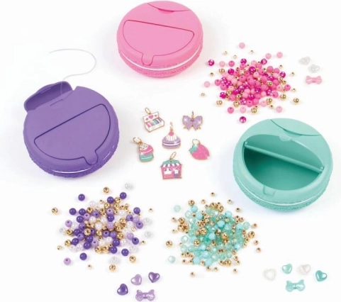 Créez vos propres bijoux avec ce kit ludique pour fabriquer des bracelets en forme de macarons. Le coffret contient 3 boîtes macaron avec des perles et des breloques sur le thème des desserts pour réaliser au minimum 12 adorables bracelets. Mesure et coupe des cordons facilitées, espace de rangement sans désordre et beaucoup de divertissement créatif pour les enfants dès 8 ans.