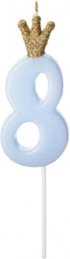Cette bougie bleue avec le chiffre 8 et une couronne est l’accessoire idéal pour toute fête d’anniversaire d’enfant. Elle est conçue pour ajouter une touche d’élégance et de joie à chaque gâteau d’anniversaire.