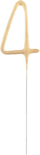 Un cierge magique doré en forme de chiffre quatre, idéal pour décorer un gâteau lors d’un anniversaire ou d’un jubilé. Ajoutez une étincelle spéciale pour une ambiance inoubliable.