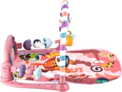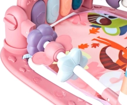 Ce tapis d’éveil rose crée un espace sûr et stimulant pour le jeu quotidien. L’arche colorée avec jouets suspendus encourage le bébé à tendre la main et à saisir, renforçant ainsi la coordination œil-main. Le piano interactif avec touches rétroéclairées propose 3 modes sonores – notes de la gamme Do–Ré–Mi–Fa, sons courts (par ex. rires de bébé) et mélodies plus longues – contribuant au développement de l’ouïe et du sens du rythme.