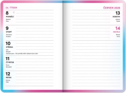 Calendrier hebdomadaire en ligne tchèque avec noms et fêtes.