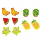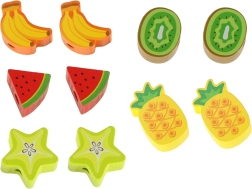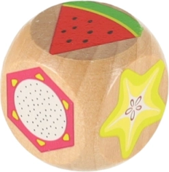 • 12 fruits en bois + dé + hérisson + ficelle