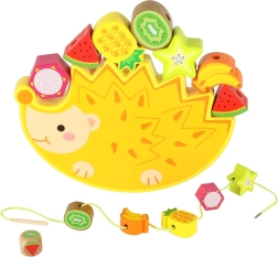 Adorable hérisson en bois avec de petits blocs de fruits colorés offrant deux jeux en un: enfilage des fruits sur une ficelle et empilement d’équilibre sur le dos du hérisson. Favorise la motricité fine, la pensée logique et la coordination œil-main. Bois de qualité finement poncé et couleurs vives invitant à un jeu long et enrichissant.