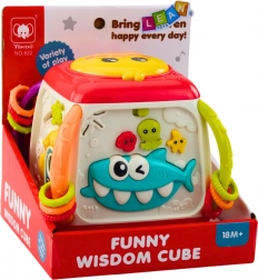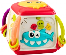 Le cube comprend des éléments interactifs tels que des boutons musicaux et des engrenages rotatifs, offrant à l’enfant des heures de divertissement et de stimulation.