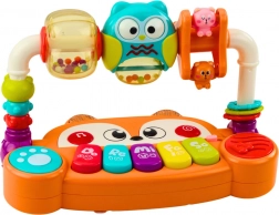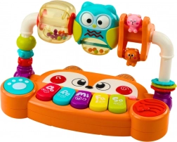 Le piano comprend une chouette rotative avec des billes à l’intérieur, ainsi que des suspensions à faire glisser et tourner, qui favorisent le développement de la motricité fine, de la coordination œil-main et des compétences manuelles. Les textures et couleurs variées stimulent la curiosité et encouragent l’exploration autonome.