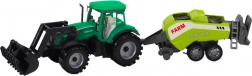 Ce set soigneusement conçu associe un tracteur classique de couleur verte avec un bras de chargeur mobile et une presse remorquée. Grâce au plastique résistant, le jouet est léger, sûr et prêt pour des aventures quotidiennes à la ferme – dans la chambre des enfants comme au jardin.