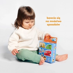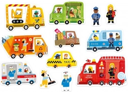 Partez pour un voyage plein de découvertes ! Le puzzle par paires sur le thème des voitures propose 8 images simples en deux pièces (p. ex. camion de pompiers, camion-benne, ambulance ou taxi) et 4 figurines séparées. Les enfants exercent la coordination œil–main, enrichissent leur vocabulaire et éprouvent la joie de chaque association réussie.