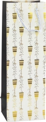 Ce sac cadeau pour bouteille allie allure représentative et fonctionnalité. L’imprimé raffiné de verres et de bulles avec accent doré apporte une touche festive à chaque cadeau – parfait pour les mariages, anniversaires, anniversaires de mariage, le Nouvel An et les événements d’entreprise. Le format universel accueille en toute sécurité la plupart des bouteilles standards.