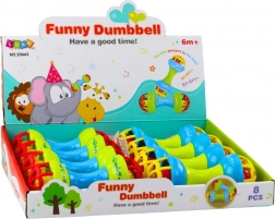 Hochet coloré en forme d’haltère avec fonction anneau de dentition, idéal comme premier jouet sensori-moteur pour bébé. Il est léger, sûr et confortable pour les petites mains, possède des extrémités en caoutchouc souple à mordiller et, à l’intérieur, des billes colorées au son délicat. Les textures variées et les couleurs vives stimulent la vue, l’ouïe et le toucher et développent les capacités de coordination dès les premiers mois.