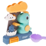 Le jouet de bain pour enfant avec dinosaures et roue hydraulique est un excellent moyen d'égayer le bain des jeunes enfants. Le jeu consiste à verser de l'eau dans le récipient supérieur en forme de grand nuage, d'où l'eau s'écoule naturellement à travers toutes les parties du jouet, offrant un divertissement visuel pour les enfants.