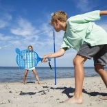 L'ensemble de tetherball de la société Sunsport est idéal pour s'amuser en plein air. Parfait pour deux joueurs, mais aussi pour le divertissement individuel. L'ensemble peut être facilement planté dans l'herbe dans le jardin pour commencer à jouer immédiatement. Les joueurs se relaient pour frapper la balle, qui tourne autour du poteau dans des directions opposées. Ce jeu est un excellent entraînement de la coordination œil-main.