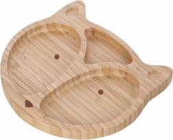 Assiette en bambou en forme d’animal avec une ventouse pour une fixation facile à la table, idéale pour les premiers essais d’alimentation.