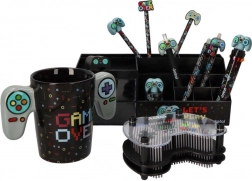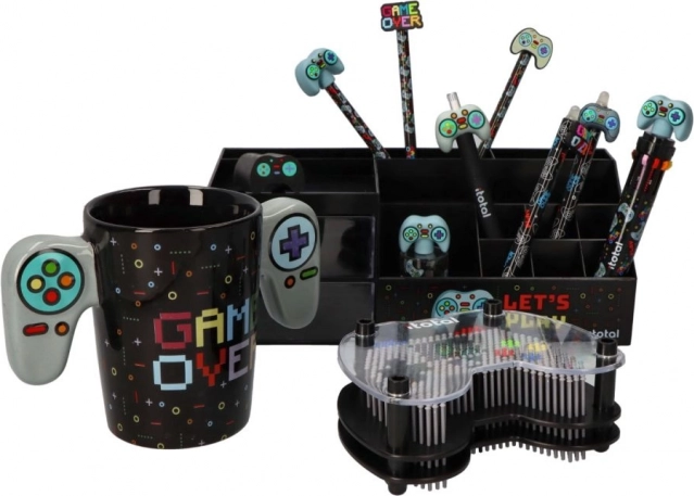 Céramique noire avec lettrage pixel coloré et icônes qui apporte une ambiance gaming à votre bureau et fait un excellent cadeau pour les joueurs.