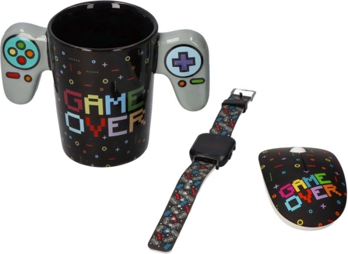 Profitez de votre boisson préférée avec une touche de nostalgie vidéoludique. Cette tasse en céramique noire au motif GAME OVER propose un design atypique avec deux anses en forme de manettes et des boutons colorés. Son look ludique s’accompagne d’une prise en main confortable et de dimensions pratiques pour un usage quotidien.