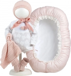 Le vêtement pour poupée bébé taille 40-42 cm fait partie d'un ensemble de 4 pièces, comprenant trois vêtements, un doudou décoratif et un nid douillet. Fabriqué à la main en Espagne et destiné aux enfants à partir de 3 ans.