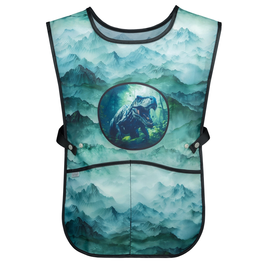Le tablier pour enfant DINO est un tablier pratique pour les arts plastiques ou les activités manuelles, doté de deux poches.
