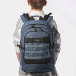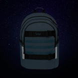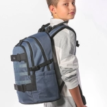 Sac à dos scolaire Skate Dust Blue: Modèle léger avec un poids inférieur à 900 g, sangles réglables pour skateboard et rembourrages dorsaux anatomiquement formés. Le sac à dos est équipé de trois compartiments séparés, d'une poche rembourrée pour ordinateur portable ou tablette jusqu'à 15 pouces, d'éléments réfléchissants et de fermetures éclair YKK fiables.