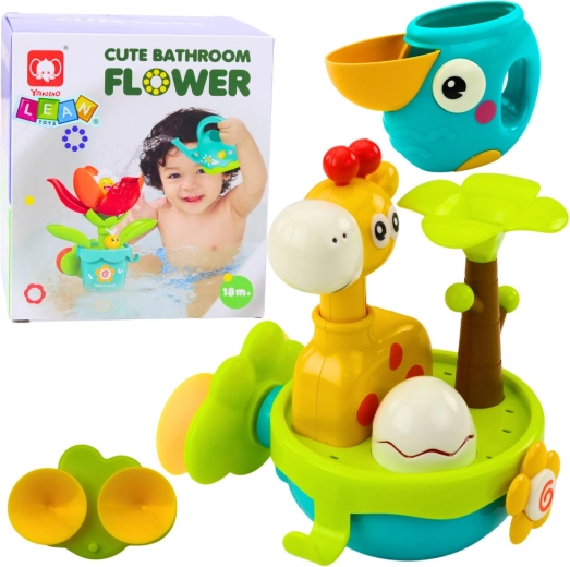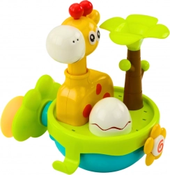 L'ensemble comprend une adorable girafe avec des parties mobiles, un palmier coloré, des fleurs et des rotors aquatiques colorés. Un gobelet pratique avec bec verseur est également inclus pour arroser le jouet avec de l'eau. Lorsque l'enfant verse de l'eau sur les zones désignées, le jouet s'anime - les parties commencent à tourner, les fleurs bougent et l'eau coule, captivant l'attention et apportant beaucoup de joie.