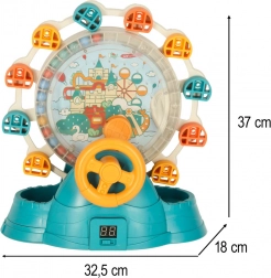 Cette fantastique grande roue est équipée d’un volant et d’un toboggan à balles, une excellente combinaison pour un jeu amusant et actif. Les enfants peuvent développer leurs compétences motrices en insérant et en attrapant les balles, tandis que les effets lumineux et sonores ajoutent une dimension supplémentaire de divertissement.