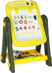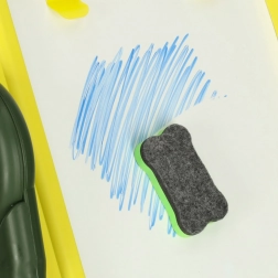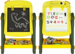 Ce tableau éducatif double face est l’outil idéal pour développer la créativité et l’apprentissage des enfants. Un côté présente une surface blanche magnétique permettant de dessiner et d’écrire au feutre effaçable à sec, tandis que l’autre côté sert de tableau noir classique pour dessiner à la craie. Orné d’un motif de dinosaures joyeux, ce tableau séduit chaque enfant par ses couleurs et ses multiples usages.