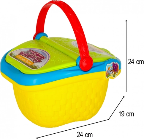 Ce panier de pique-nique coloré pour enfants est un excellent choix pour jouer à la maison comme en plein air. Grâce à ses accessoires réalistes – fruits en plastique, boissons et gobelets – les enfants peuvent préparer leur propre « festin », apprendre les couleurs et les formes, et développer leurs compétences sociales en jouant. Le set est fabriqué en plastique résistant, facile à nettoyer et, grâce à sa poignée, se transporte aisément au parc, à la plage ou en excursion.