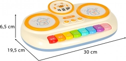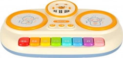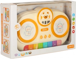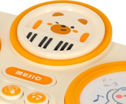 - La technologie du piano tactile utilise de petites roues en matériau doux avec des motifs d'oursons qui s'illuminent et permettent aux enfants de créer des rythmes avec leurs mains.