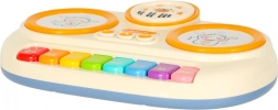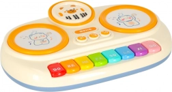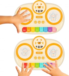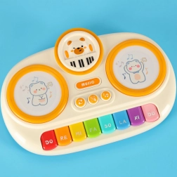Piano interactif pour enfants en couleur beige offrant six modes sonores différents, dix mélodies joyeuses et un mode DJ pour un divertissement créatif avec le son.