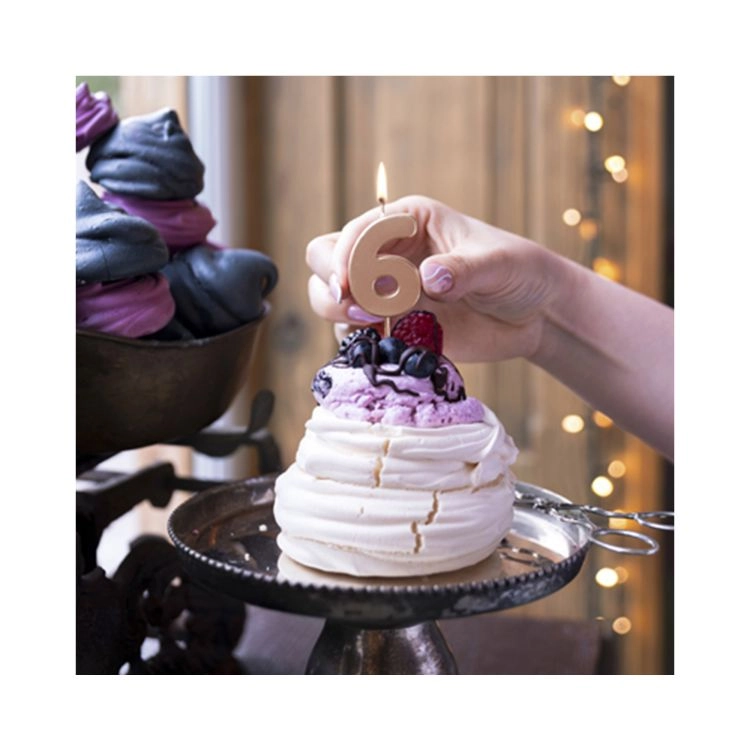 Célébrez les moments exceptionnels avec une élégante bougie de gâteau rose doré en forme de chiffre 6. Apportez une touche de luxe et de style moderne à votre gâteau.