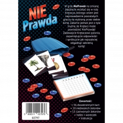 Plongez dans un jeu excitant plein d'incertitude et de bluff avec Jeu Nieprawda ! Dans ce jeu, le joueur devient enquêteur en essayant de découvrir quelle carte le Krętatcz a choisie. Le jeton tiré au sort décide si le Krętatcz dit la vérité ou bluffe.
