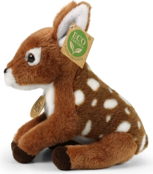 Faon en peluche de la collection exclusive de la marque Rappa mesure 20 cm et est fabriqué avec un accent sur le respect de la nature à partir de matériaux recyclés tels que des bouteilles PET.