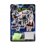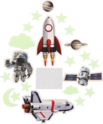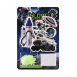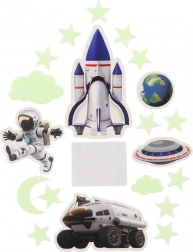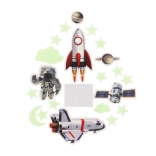 Transformez la chambre des enfants en une petite galaxie ! Le set comprend des étoiles, planètes et autres motifs spatiaux lumineux qui, après exposition à la lumière, brillent dans l’obscurité et créent une atmosphère magique. Idéal pour les petits explorateurs, aide à se calmer avant de dormir et à rendre l’espace plus douillet.