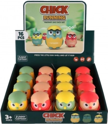 Le mécanisme à inertie transforme une simple pression en un mouvement fluide. Les enfants s’amusent à voir jusqu’où le poussin va aller.