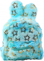 Le sac à dos est fabriqué en peluche douce, incrustée de petites étoiles dorées et noires scintillantes. Les oreilles qui dépassent sur le dessus apportent une touche féerique, et l’ensemble est décliné dans des tons pastels agréables pour les enfants. Le sac comprend un compartiment principal zippé et une petite poche frontale – idéale pour les petits objets.