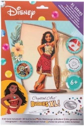 Le coffret contient tout le nécessaire pour créer l’image : une plaque en bois en forme du personnage de Vaiana, un support en bois, un stylet pour appliquer les strass, un plateau, de la cire et un assortiment de strass colorés. Le produit mesure environ 25 cm, idéal pour la décoration intérieure ou comme cadeau pour les amateurs d’activités créatives.