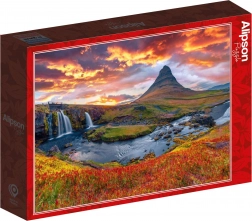 Le Puzzle Cascade Kirkjufellsfoss vous transporte dans un lieu magique d'Islande, où la cascade en cascade présente sa beauté naturelle. Un design élégant et des couleurs fidèles offrent une expérience vivante de couleurs et de détails.