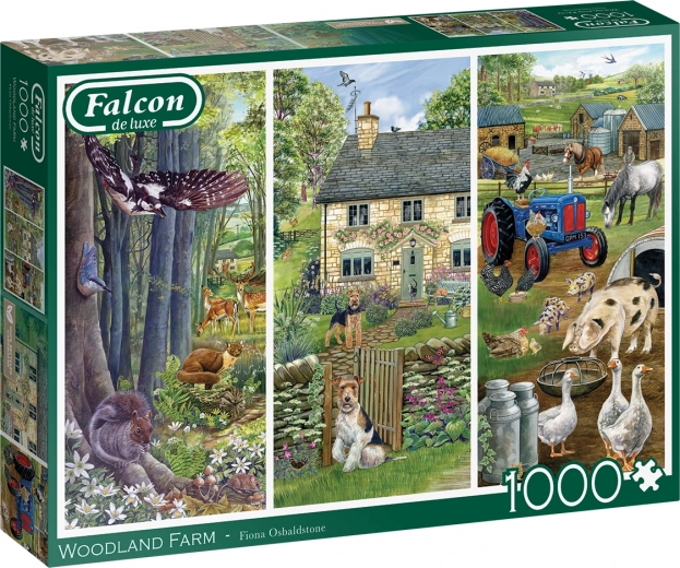 Assemblez le puzzle Ferme Woodland de 1000 pièces de FALCON, dimensions 68 x 49 cm, pour une détente parfaite.