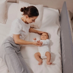 La barrière de sécurité Lionelo Lora XL est conçue pour offrir à votre enfant un sentiment de sécurité optimal lorsqu'il dort à côté des parents. La barrière est équipée d'un mécanisme de verrouillage double qui empêche l'ouverture accidentelle et une protection en mousse douce sur la partie supérieure pour que l'enfant puisse s'appuyer confortablement.