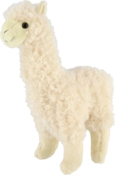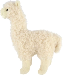 Cette alpaga en peluche blanche est faite pour les câlins au quotidien. Sa surface douce et duveteuse est agréable au toucher, et sa finition de qualité avec des yeux expressifs, un petit museau et de jolies oreilles lui confère une allure réaliste et attachante. Grâce à sa hauteur compacte de 30 cm, elle tient facilement dans les bras et s'intègre parfaitement comme accessoire cosy dans une chambre d'enfant.