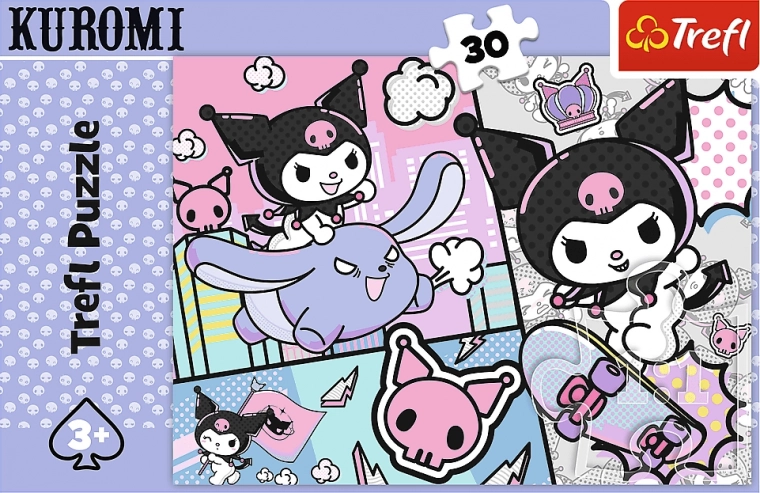 Un puzzle adorable à l’effigie de KUROMI ravira petits et grands fans. Il contient 30 pièces et, une fois assemblé, forme une image de 27 × 20 cm. Idéal pour de courtes sessions de jeu, le développement de la motricité fine et de la patience.