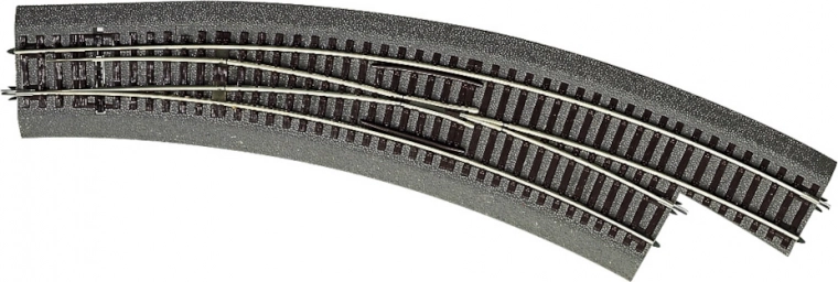 L'aiguillage Roco Line combine une paire de courbes avec des rayons de 604,4 mm et 542,8 mm vers la droite. Il peut être actionné manuellement ou à distance grâce à des moteurs d'aiguillage électriques spéciaux. Sa construction solide et durable assure une longue durée de vie, tandis que l'alliage de zinc et d'argent utilisé garantit une excellente conductivité électrique et une résistance à la corrosion.