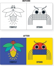 - 6 pages avec d’adorables motifs d’insectes (abeille, coccinelle, etc.).