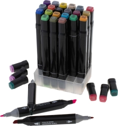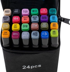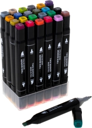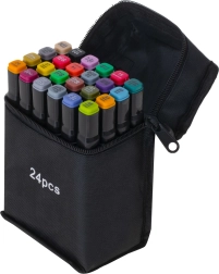 Marqueurs alcool à double pointe en étui, 24 couleurs + support