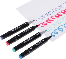- Deux pointes en une : large pour le remplissage, fine pour les contours