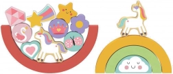 Tous les blocs sont fabriqués en bois certifié FSC, garantissant une gestion responsable des matériaux. Ce jouet offre non seulement du plaisir, mais développe aussi la motricité fine, aidant les petites mains à apprendre à assembler différentes formes.