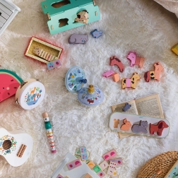 Les illustrations de Sarah Betz encouragent les enfants à faire preuve de créativité et à inventer des histoires. C’est un excellent moyen d’initier les enfants aux phénomènes physiques fondamentaux, comme la gravité. Trois thèmes sont disponibles : animaux, fête foraine et moyens de transport.