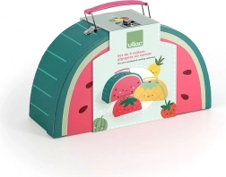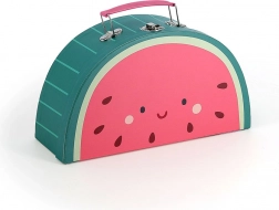 Le set comprend trois valisettes de tailles différentes qui s’emboîtent facilement. Chaque valisette est décorée de motifs de fruits juteux tels que pastèque, ananas et fraises, apportant une touche de charme à l’univers des enfants.