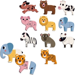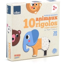 L'ensemble d'aimants Vilac Animaux Amusants présente dix animaux, chacun composé de trois parties. Combinez-les selon votre imagination et créez des combinaisons d'animaux uniques et amusantes - par exemple, une tête de tigre, un corps de vache et une queue d'éléphant. Grâce à ce jeu, aucune limite à votre créativité et imagination.