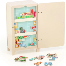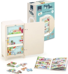 Conçu par Ingela P. Arrhenius, le jeu comprend un réfrigérateur en bois, deux étagères magnétiques et 21 aimants en forme d’aliments. Les enfants peuvent créer leur propre organisation du réfrigérateur, ce qui stimule leur créativité et leurs capacités de résolution de problèmes. Un livret d’instructions propose 7 solutions différentes.